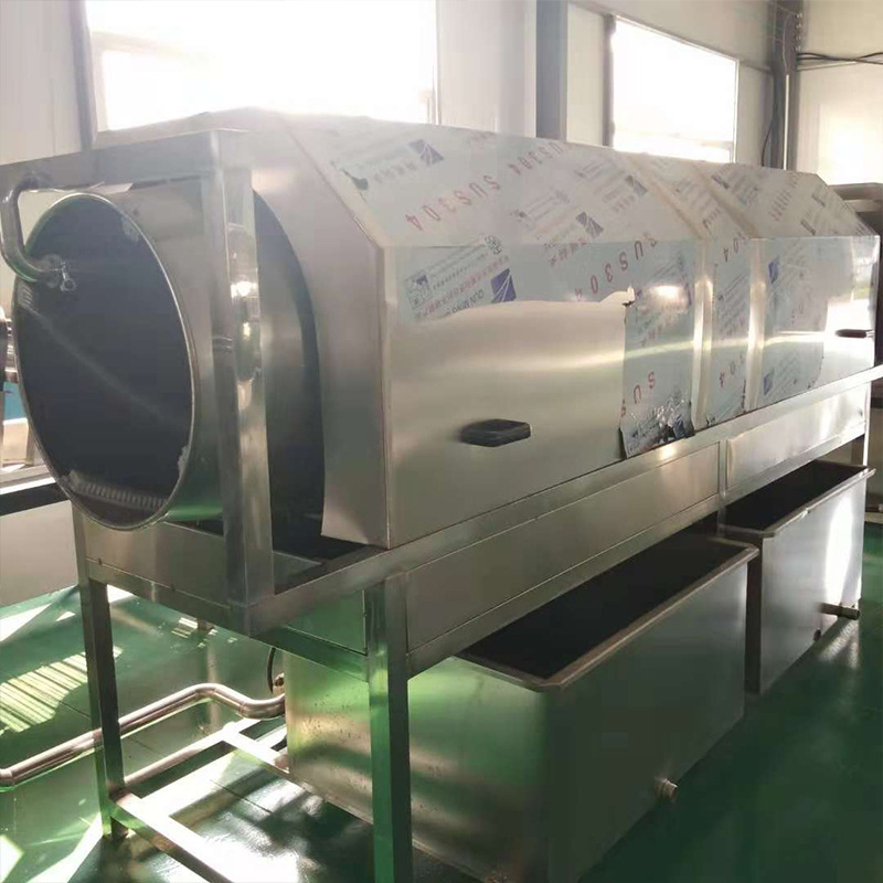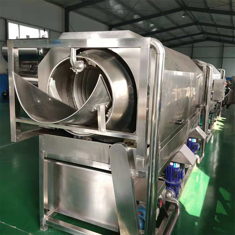 當原料放入該機后,毛刷輥旋轉(zhuǎn)刷洗原料并使其不斷翻轉(zhuǎn),同時,排水管不斷地噴淋,把從原料上刷洗下來的污物沖洗掉,直到洗凈為止,順著毛輥的旋轉(zhuǎn)方向出料。