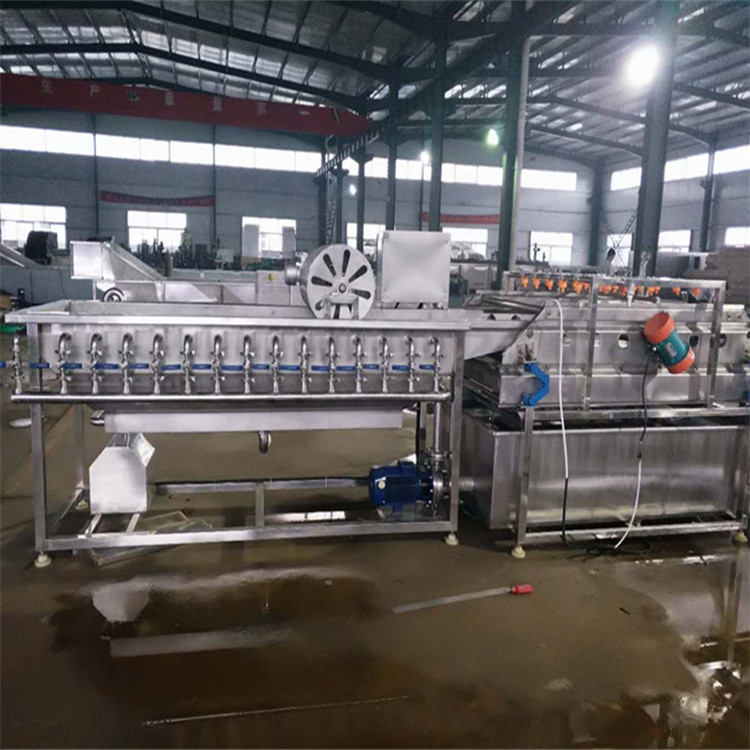 該設(shè)備適用于小的絲條狀或小塊狀物料的柔性清洗。分為清洗池和振動瀝水機兩部分,殺菌劑可直接投入清洗池中。設(shè)備整體為SUS304不銹鋼制作,耐腐蝕性高,完全符合我國食品衛(wèi)生安全要求。該線全部采用快接方式連接,閥門控制,通過調(diào)節(jié)閥門,控制水流速度以及氣泡大小。