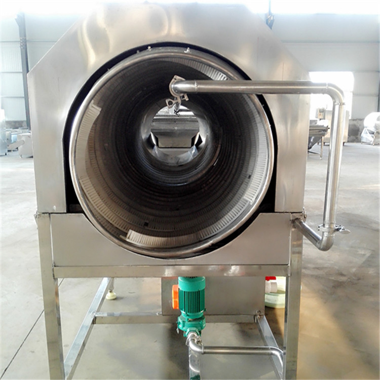 當原料放入該機后,毛刷輥旋轉(zhuǎn)刷洗原料并使其不斷翻轉(zhuǎn),同時,排水管不斷地噴淋,把從原料上刷洗下來的污物沖洗掉,直到洗凈為止,順著毛輥的旋轉(zhuǎn)方向出料。